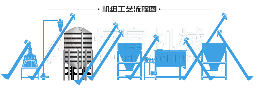 本(běn)套機組(zǔ)是一套(tào)製作粉狀飼料(liào)的設備,前端搭配水滴式飼料粉碎機,中間配備一個8噸料塔以(yǐ)及兩個配料秤,後端搭配了臥式單軸雙螺帶飼(sì)料混合機。在原(yuán)料粉(fěn)碎的(de)同時,豆粕(pò)、麩皮、石粉能同步進行稱重、配料,隨後所有物料一起進行混合。本條生產線不僅可以實現原料的精準配比,還能提(tí)高(gāo)生產效率,降低生產成本。