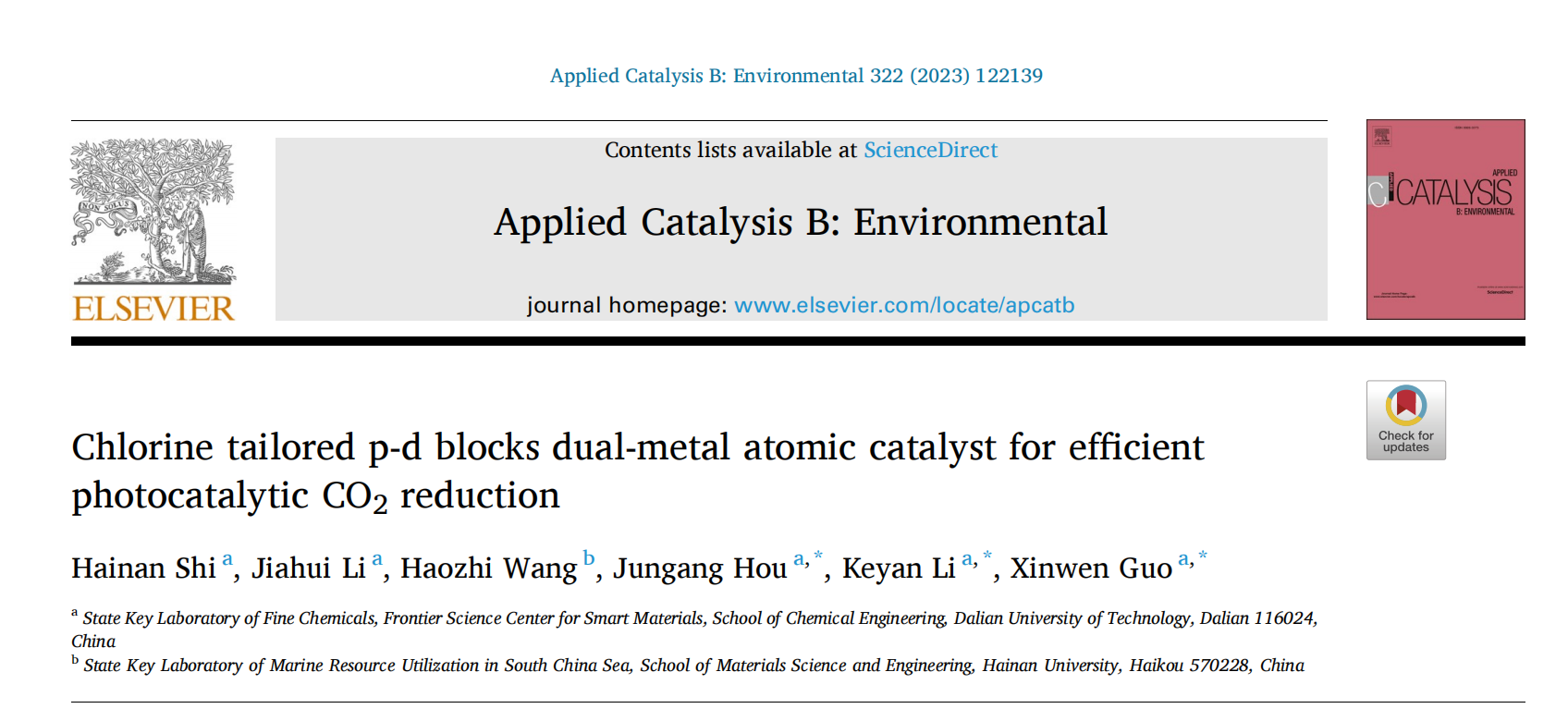 期刊名:Applied Catalysis B: Environmental