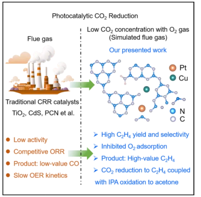 Liu Q, Cheng H, Ching KTW, et al. Oxygen-tolerant Photocatalytic Conversion of Simulated Flue Gas to Ethylene. Chem, 2025. 11, 102391