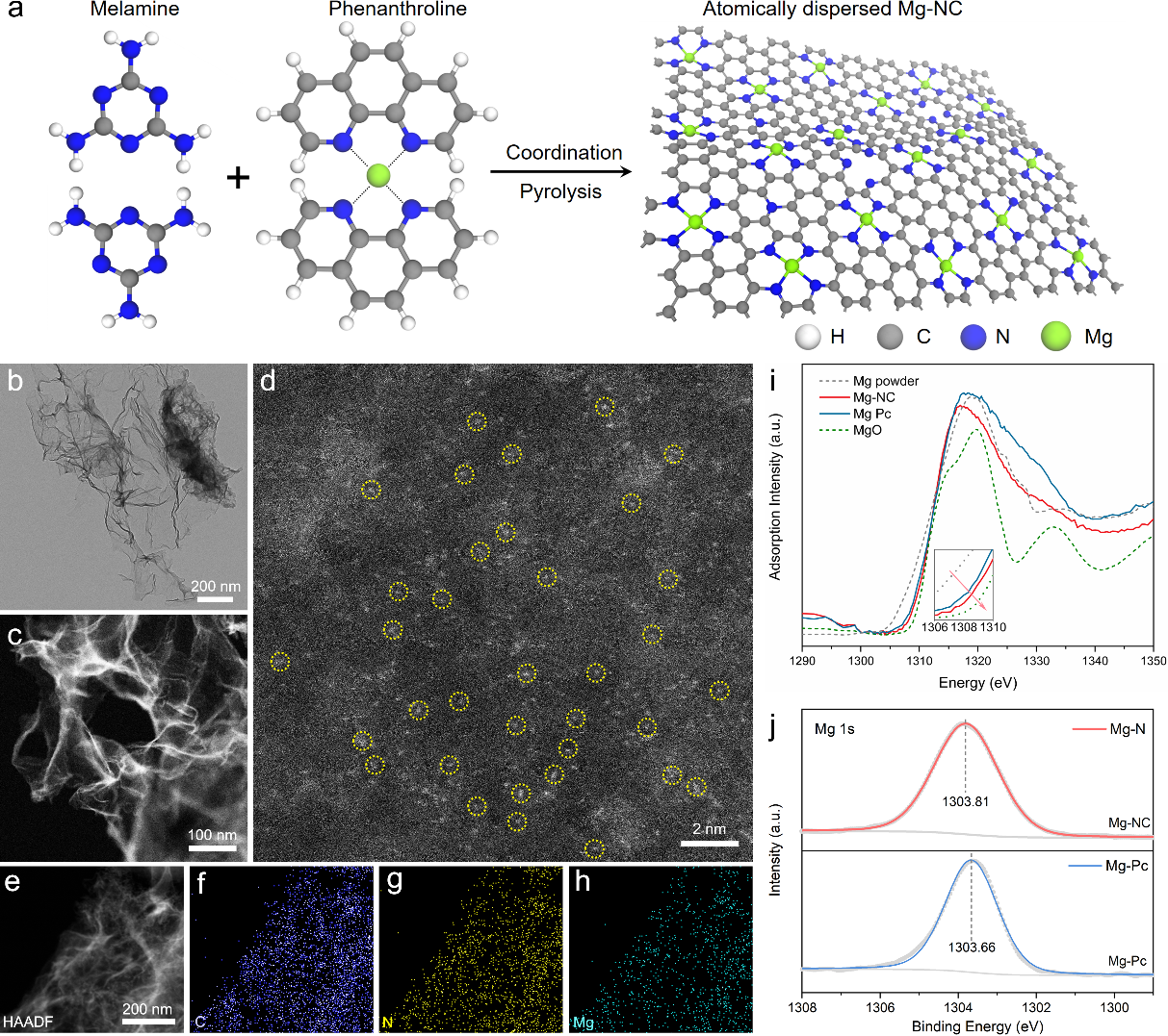 圖2 仿(fǎng)生酶類葉綠(lǜ)素Mg-NC合成示意圖與結構(gòu)表征