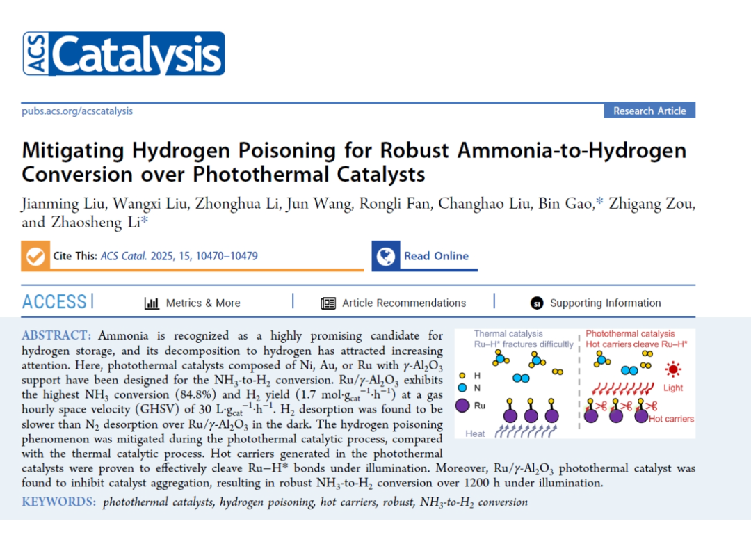 《文章(zhāng)投稿》光(guāng)熱催化劑上氨-氫轉(zhuǎn)化的氫中毒緩解