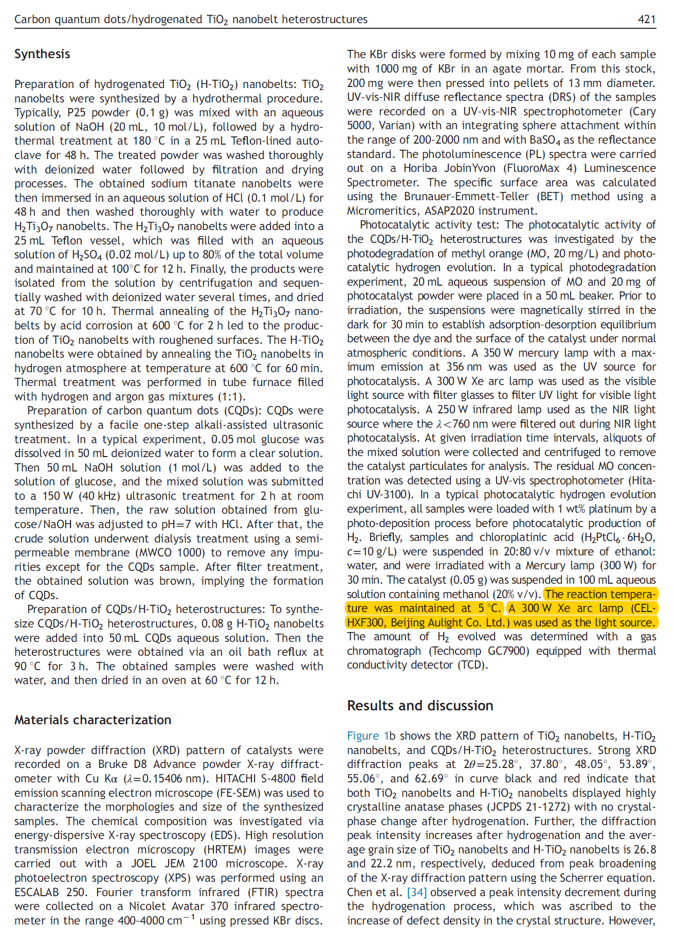 Carbon quantumdots/hydrogenatedTiO2 nanobelt heterostructuresandtheirbroad spectrum photocatalyticpropertiesunderUV, visible,andnear-infraredirradiati