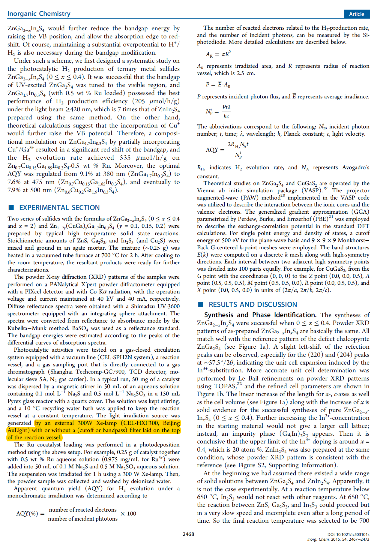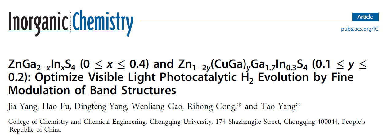當前位置 : 首頁 > 資訊動態 > 論文(wén)發表 > ZnGa2−xInxS4 (0 ≤ x ≤ 0.4) and Zn1−2y(CuGa)yGa1.7In0.3S4 (0.1 ≤ y ≤ 0.2): Optimize Visible Light Photocatalytic H2 Evolution by Fine Modul