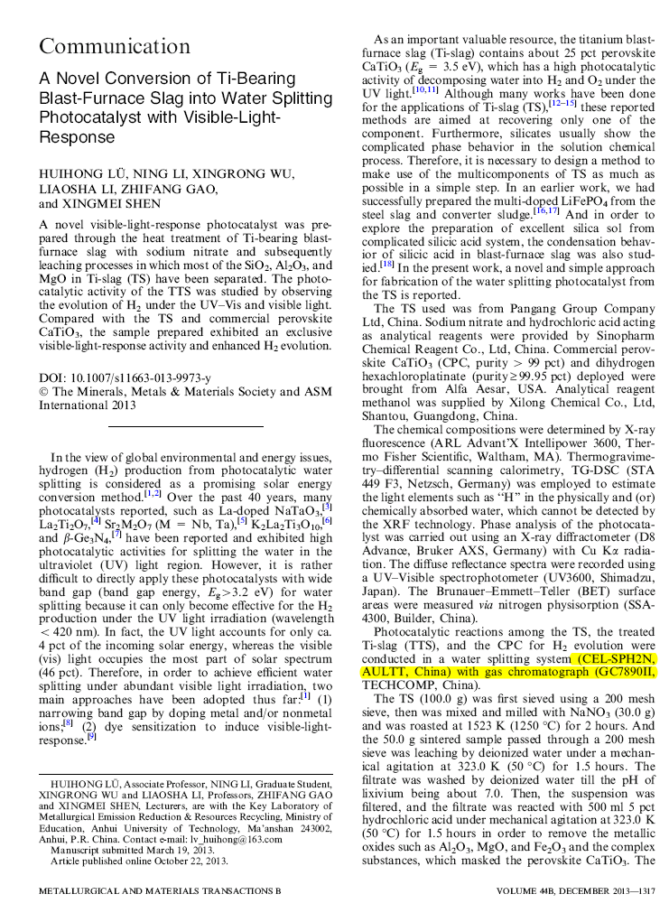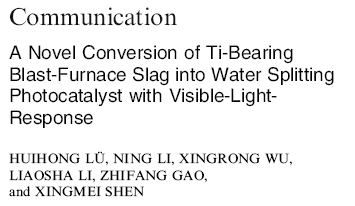 當前位置 : 首頁 > 資訊動態 > 論文發表 > A Novel Conversion of Ti-Bearing Blast-Furnace Slag into Water Splitting Photocatalyst with Visible-Light- Response