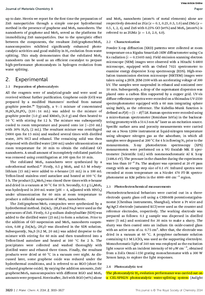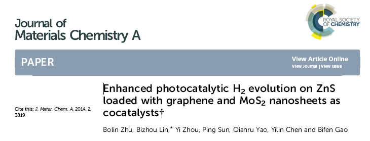 當前位置 : 首頁 > 資訊動態 > 論(lùn)文發表(biǎo) > Enhanced photocatalytic H2 evolution on ZnS loaded with graphene and MoS2 nanosheets as cocatalysts†