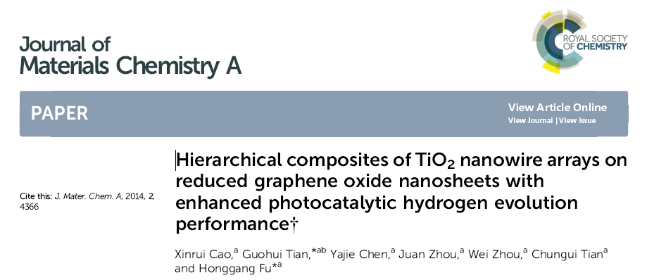 當前位置 : 首頁 > 資訊動態 > 論文發表 > Hierarchical composites of TiO2 nanowire arrays on reduced graphene oxide nanosheets with enhanced photocatalytic hydrogen evolution performance†