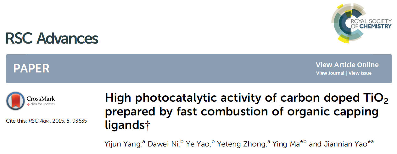 當(dāng)前(qián)位置 : 首頁 > 資訊動態 > 論文發表 > High photocatalytic activity of carbon doped TiO2 prepared by fast combustion of organic capping ligands†