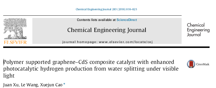 當前位置 : 首(shǒu)頁 > 資訊動態 > 論文發表 > Polymer supported graphene–CdS composite catalyst with enhanced photocatalytic hydrogen production from water splitting under visible light