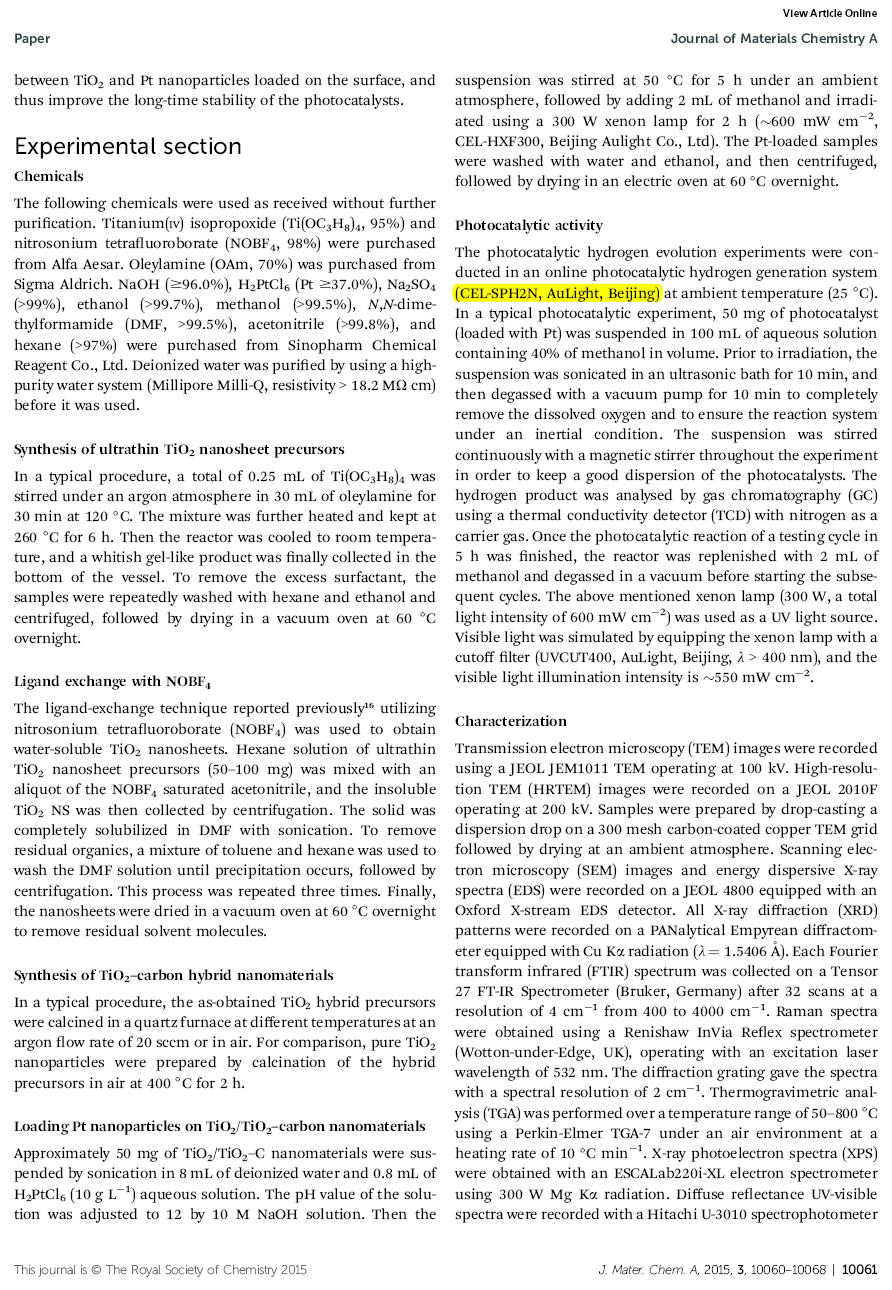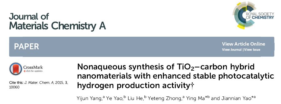 當前位置 : 首頁 > 資訊(xùn)動態 > 論文發表 > Nonaqueous synthesis of TiO2–carbon hybrid nanomaterials with enhanced stable photocatalytic hydrogen production activity†