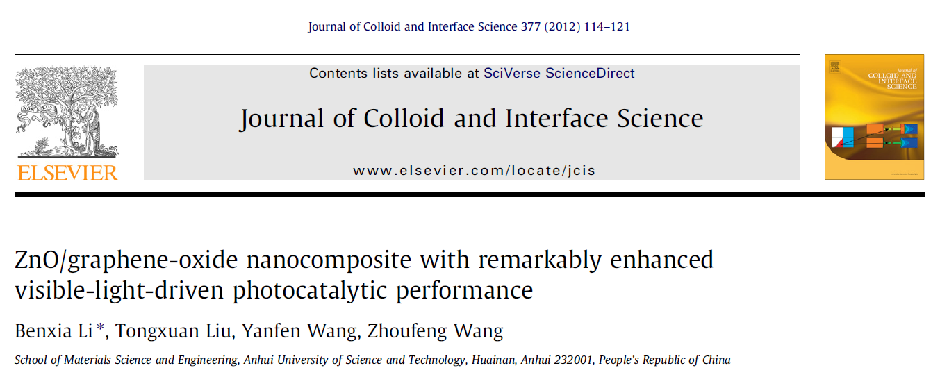 當前位置 : 首(shǒu)頁 > 資訊動態 > 論文發表 > ZnO/graphene-oxide nanocomposite with remarkably enhanced visible-light-driven photocatalytic performance