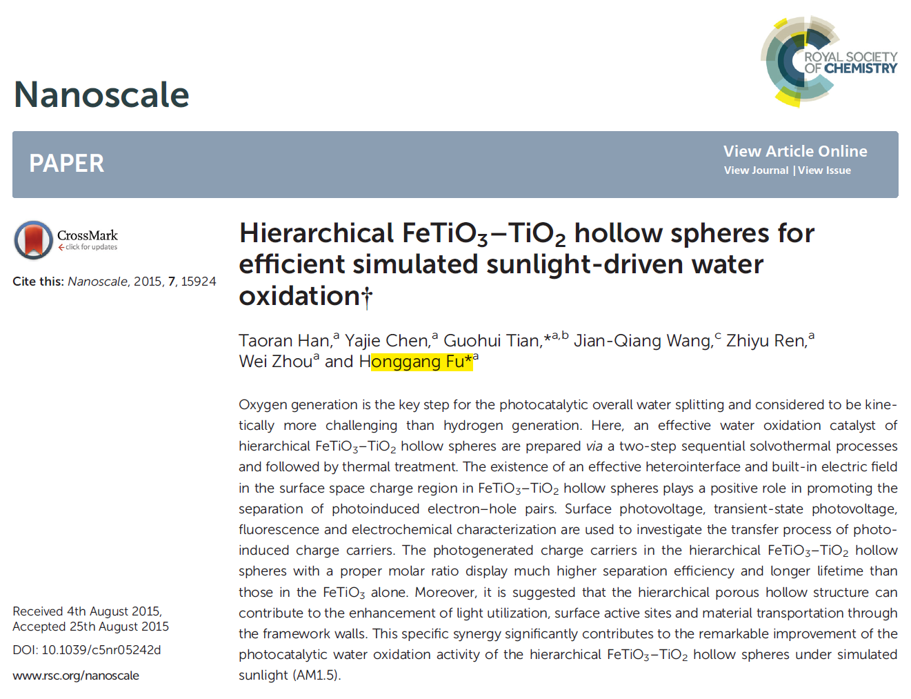 當前位置 : 首頁 > 資(zī)訊動態 > 論文發表 > Hierarchical FeTiO3–TiO2 hollow spheres for efficient simulated sunlight-driven water oxidation†