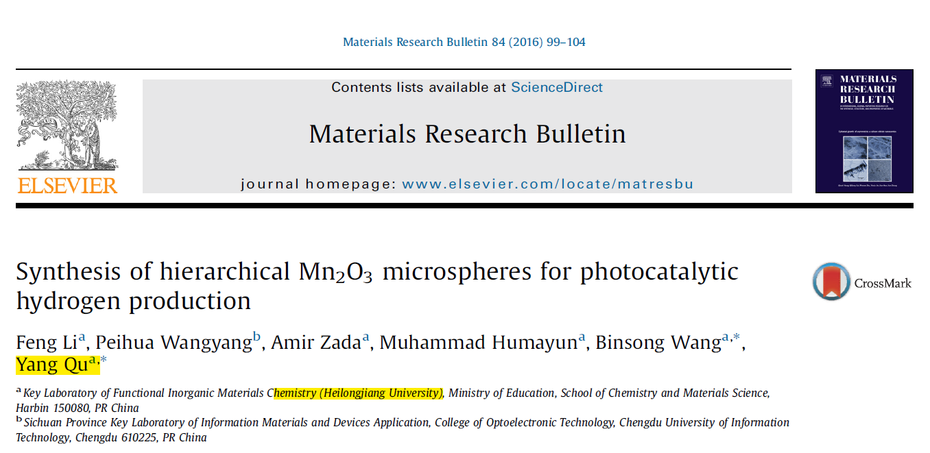 當前位置(zhì) : 首頁 > 資訊動態 > 論文發表 > Synthesis of hierarchical Mn2O3 microspheres for photocatalytic hydrogen production