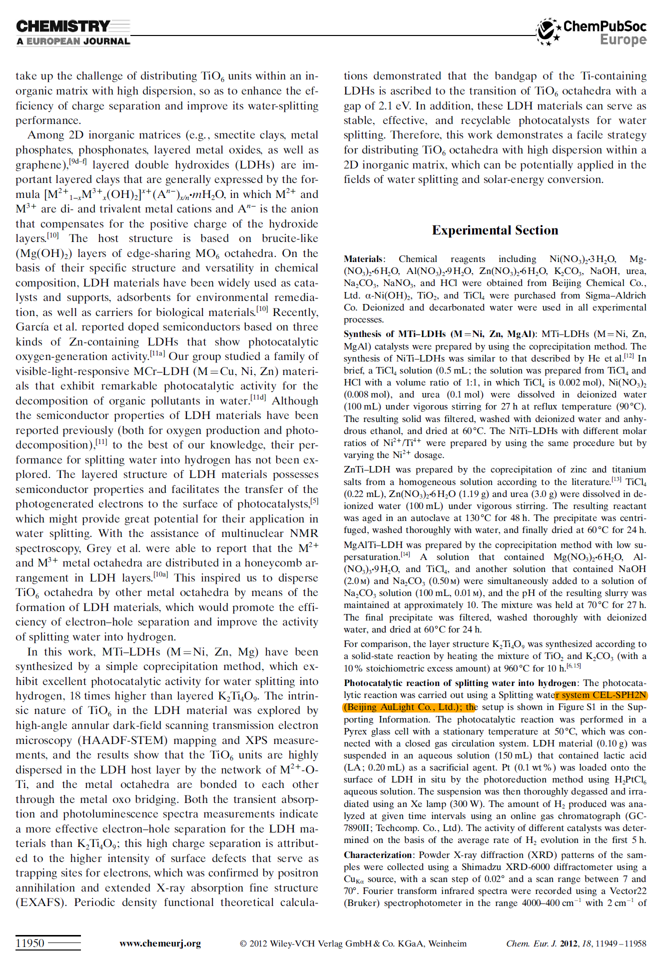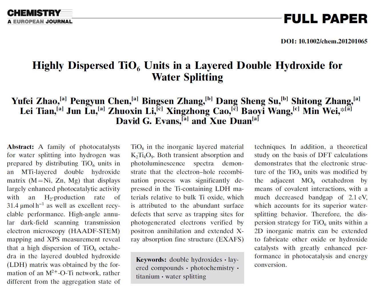 當前(qián)位置 : 首頁 > 資訊動(dòng)態 > 論文發表 > Highly Dispersed TiO6 Units in a Layered Double Hydroxide for ACHTUNGTRENUNGWater Splitting
