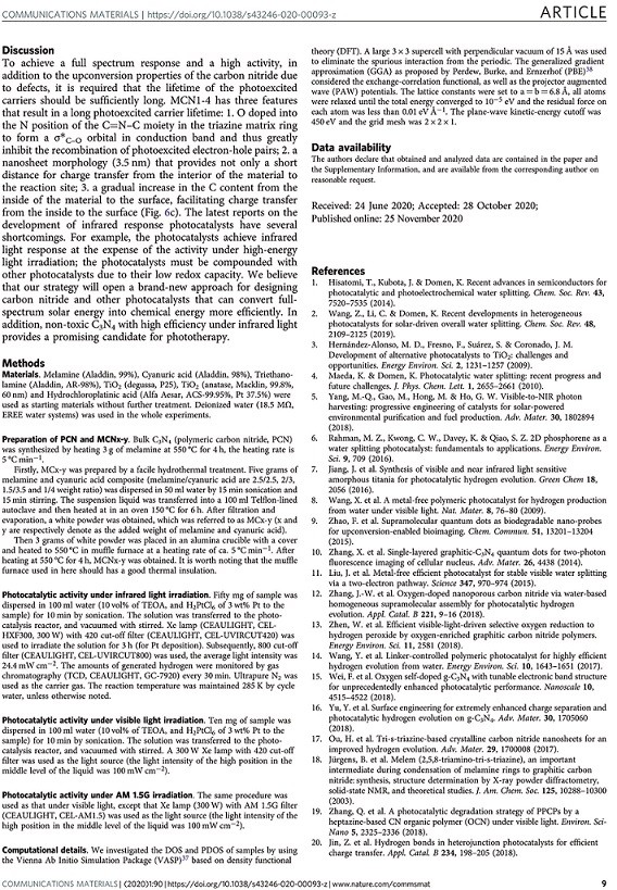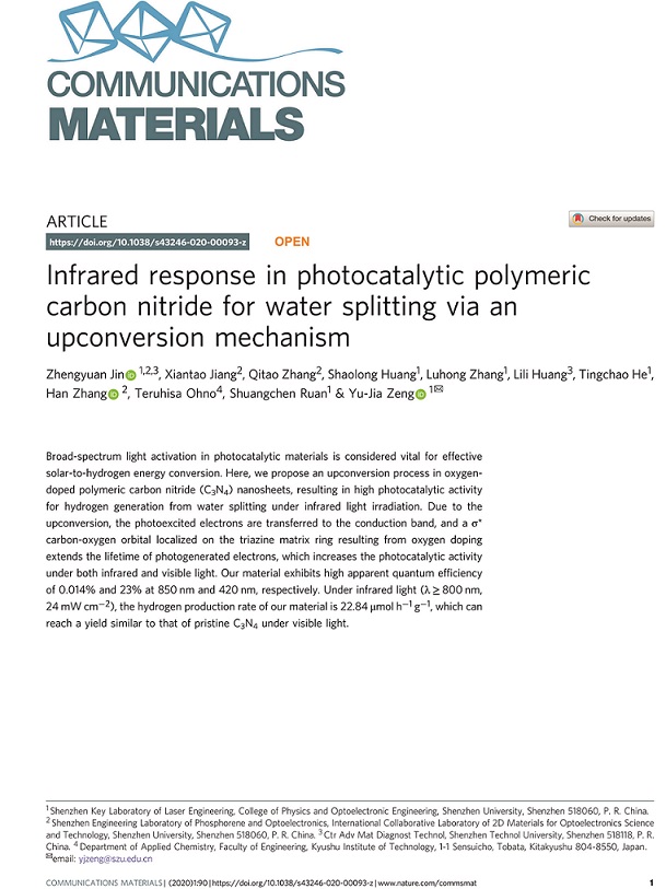 當前位置 : 首(shǒu)頁 > 資訊動態 > 論文發表 > Infrared response in photocatalytic polymeric carbon nitride for water splitting via an upconversion mechanism