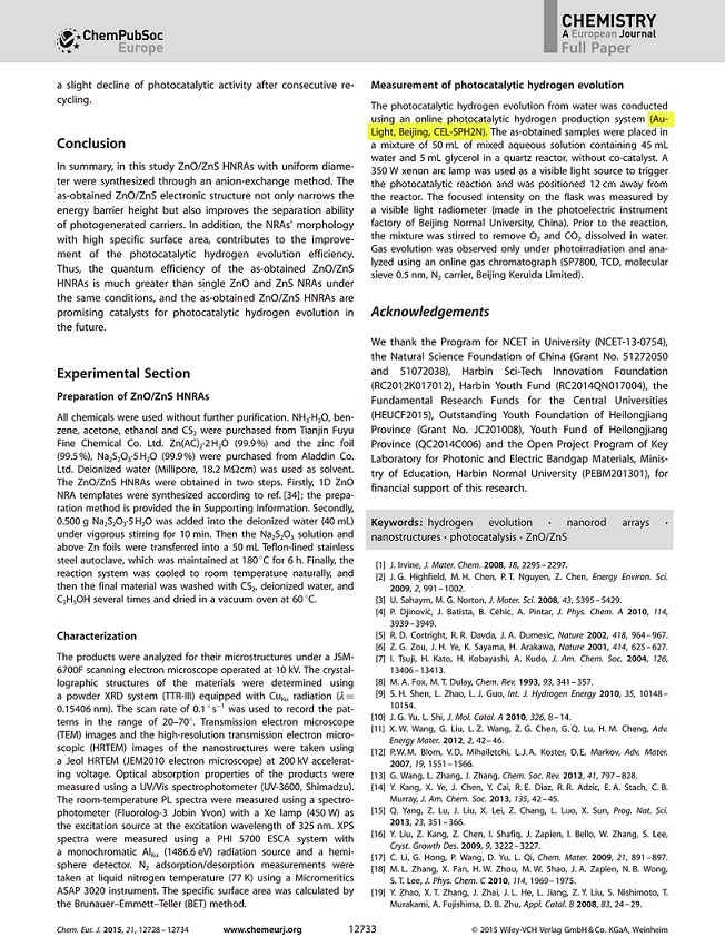 當(dāng)前位置 : 首頁 > 資訊動態 > 論文發表 > ZnO/ZnS Heterostructured NanorodArraysand Their Efficient PhotocatalyticHydrogen Evolution