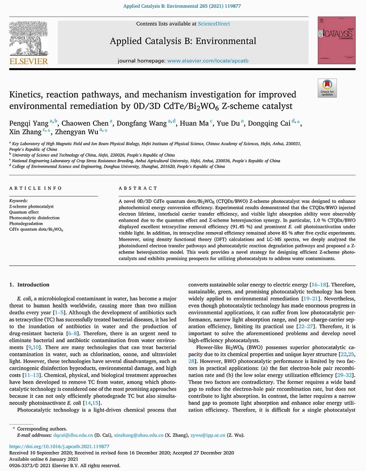 當前位置 : 首頁 > 資訊動態 > 論文發表 > Kinetics, reaction pathways, and mechanism investigation for improved environmental remediation by 0D/3D CdTe/Bi2WO6 Z-scheme catalyst
