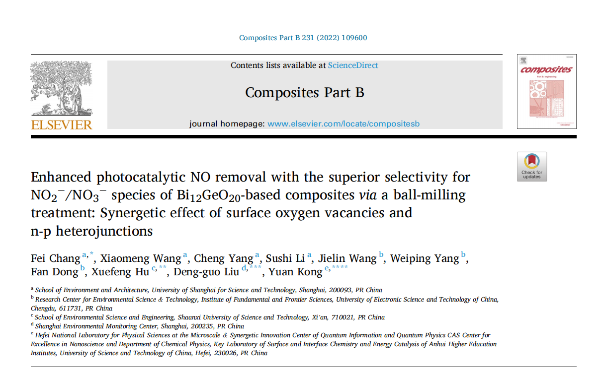 球磨法製備具有增強NO去除活性和NO2−/NO3−選擇性的Bi12GeO20基複合體係:表麵氧空位和n-p異質結構的協同作用。
