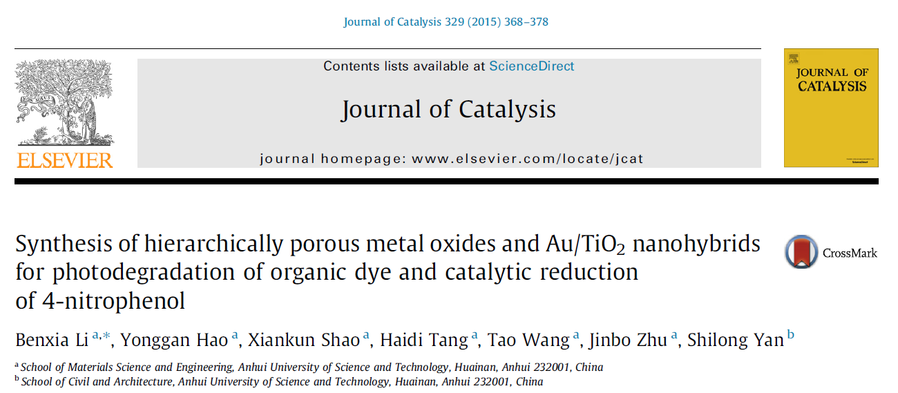 當前位置 : 首頁 > 資訊動態 > 論文發表 > Synthesis of hierarchically porous metal oxides and Au/TiO2 nanohybrids for photodegradation of organic dye and catalytic reduction of 4-nitrophenol