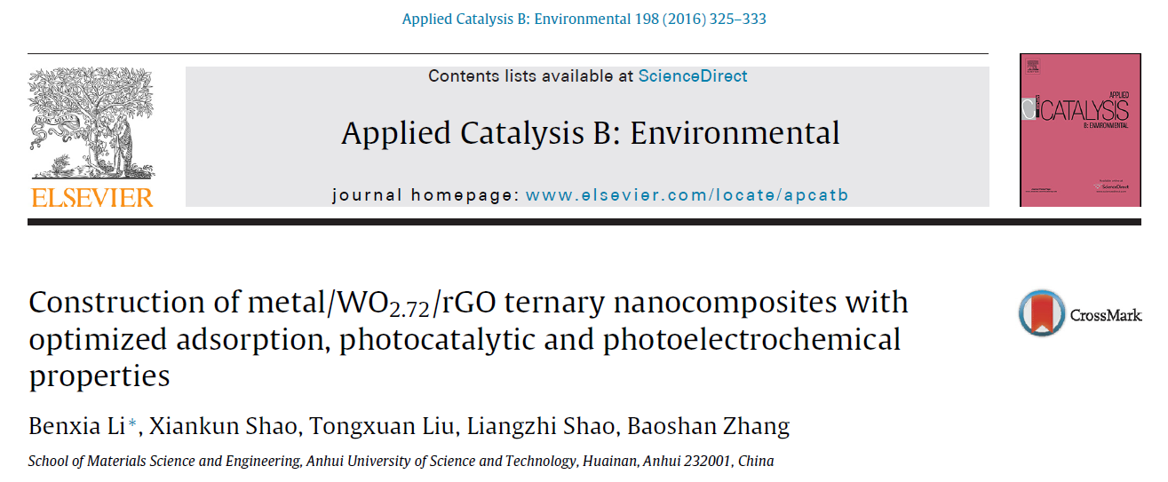 當前位(wèi)置 : 首頁 > 資訊動態 > 論文發表 > Construction of metal/WO2.72/rGO ternary nanocomposites withoptimized adsorption, photocatalytic and photoelectrochemicalproperties