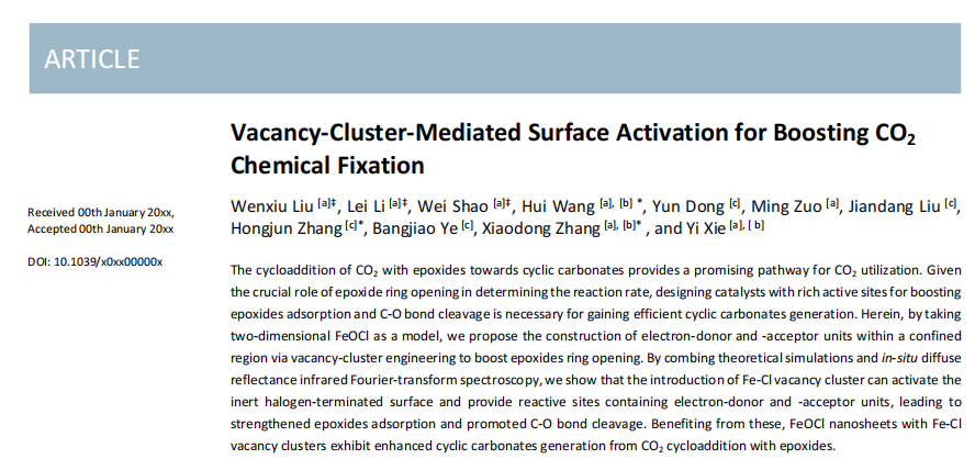 標題:Vacancy-Cluster-Mediated Surface Activation for Boosting CO2 Chemical Fixation