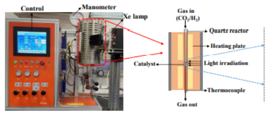 本研究工作中使用負載在多孔Al2O3載體上的Ir-CoO活(huó)性中(zhōng)心作(zuò)為催化劑,用(yòng)於光熱催化CO2加(jiā)氫製CH4。Ir納米顆粒與CoO的(de)密切相互作用以及Al2O3載體的穩定作用是其優異催化性能的主要原因。DFT計算和數值模擬的機理研究表明,CoO納米顆粒作為(wéi)光催化劑為Ir納米顆(kē)粒提供電子,同時作為“納米加熱器”有效提(tí)高Ir活性位點周圍的局部(bù)溫度,從而促進反應物分子的吸附、活化和轉化。原位紅外光譜證明光照也有效地促進了*HCOO中間(jiān)體的轉(zhuǎn)化(huà)。本工作中,基(jī)於最優(yōu)的催化劑,在250 ℃光照和常壓下,CH4產率高達128.9 mmol gcat-1 h-1,選擇性為92%。