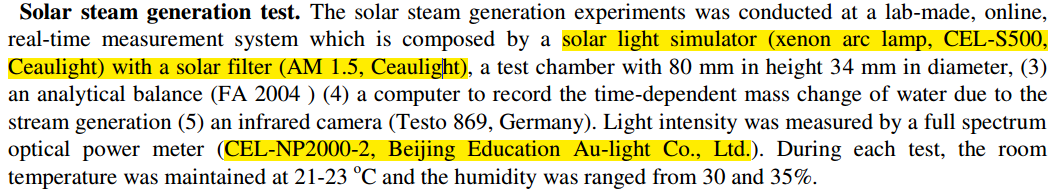 圖1光熱(rè)材料太陽能(néng)蒸發將低階的太陽能轉化為高階的(de)熱能和(hé)蒸汽能性能測試