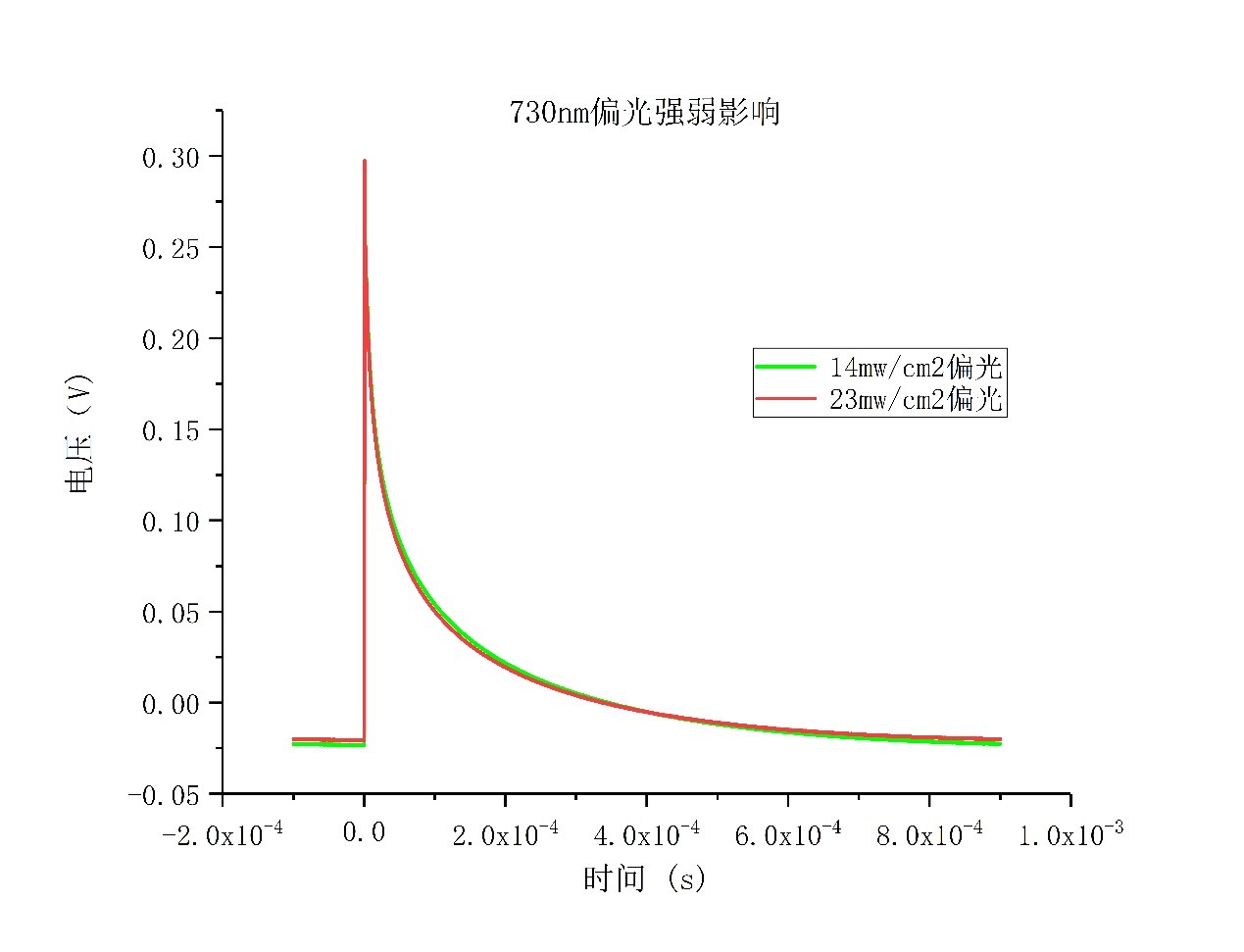 偏(piān)光630nm時,光強越強樣品TPV信號無變化。