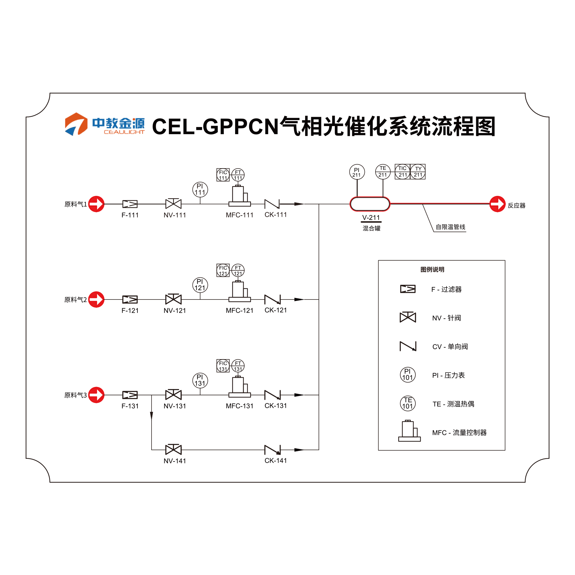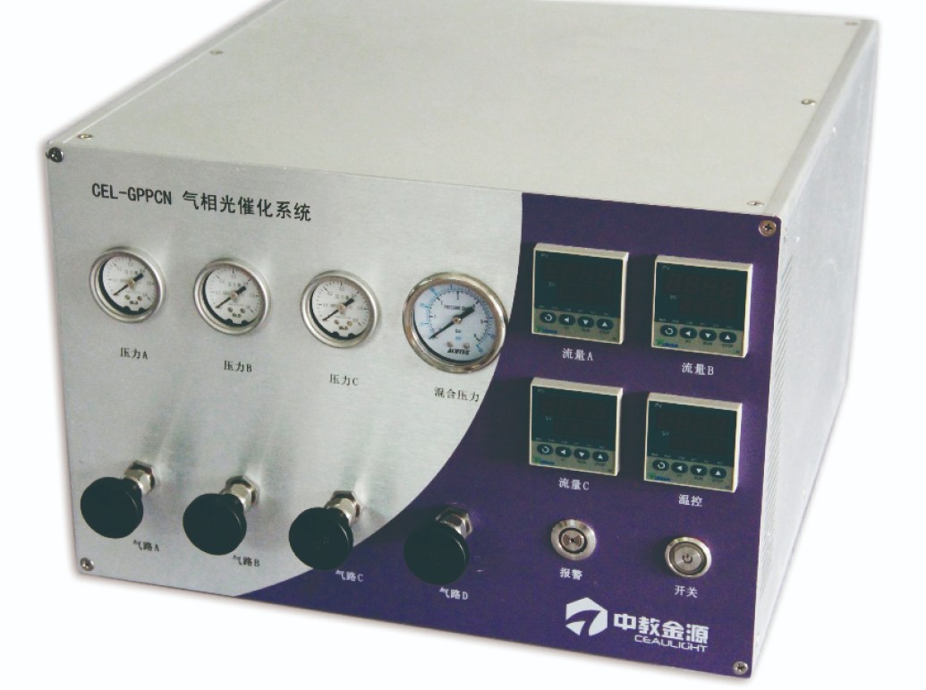 CEL-GPPCN 氣相光催化係統可以實現多路氣體的配氣混合,采用質(zhì)量流量計按需求實現任意氣體配比(bǐ),氣體混合室及管路控溫(<200℃),出口(kǒu)管線采用自限溫度管線。係統采(cǎi)用多路配氣係統(tǒng),多(duō)級混合反應,耐(nài)壓的全不(bú)鏽鋼管(guǎn)路,反應部分按需求配置各種混合釜,反應釜,反應器,光催化反應器,實現(xiàn)相應的光催化實驗。