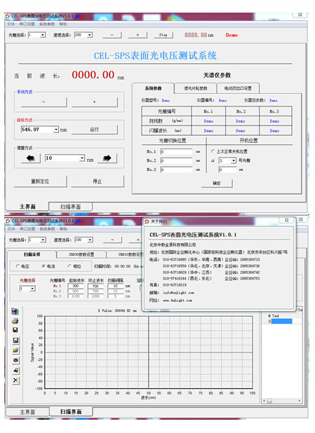 13)專用控製(zhì)軟件,數據記載,數據保存,應用於(yú)表麵光電(diàn)壓譜(pǔ)的數據反饋,可以反控單色儀、鎖相放大器(SR810、SR830、7265、7225)、斬波器、光源(yuán),根據需求自行(háng)修改參數,可根據需求進行源數據導出;
