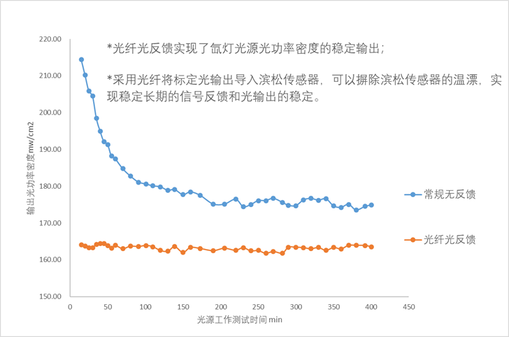 光穩定性 | 光纖光反饋實現了氙燈光(guāng)源光功率密度的穩定輸出(chū);采用光纖(xiān)將標(biāo)定光輸出導入濱鬆傳感器,可以摒除濱鬆傳感器的溫漂,實現穩定長期的信號反(fǎn)饋和光(guāng)輸出的穩定。 | |