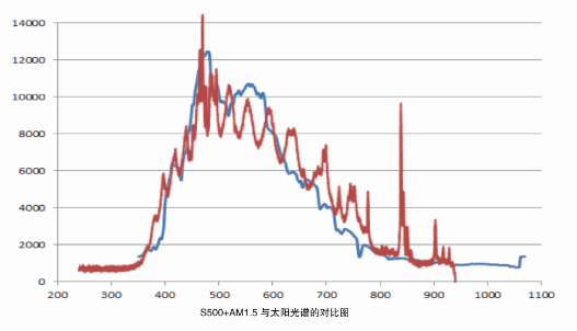 AM1.5模擬(nǐ)日光光譜圖(AULTT-P係列光(guāng)纖光譜儀測量)