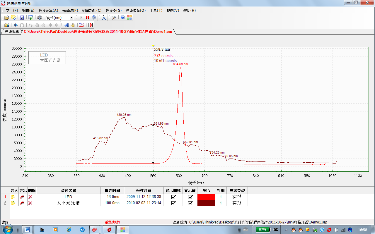 4)提供多種樣品光譜(標準光源光譜/太(tài)陽光光譜/氘燈光譜/汞燈光譜/各類LED光(guāng)譜/高低色溫節能燈光譜(pǔ);各種玻璃片的(de)吸光度光譜)