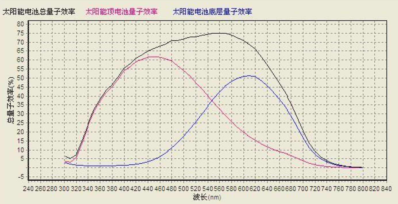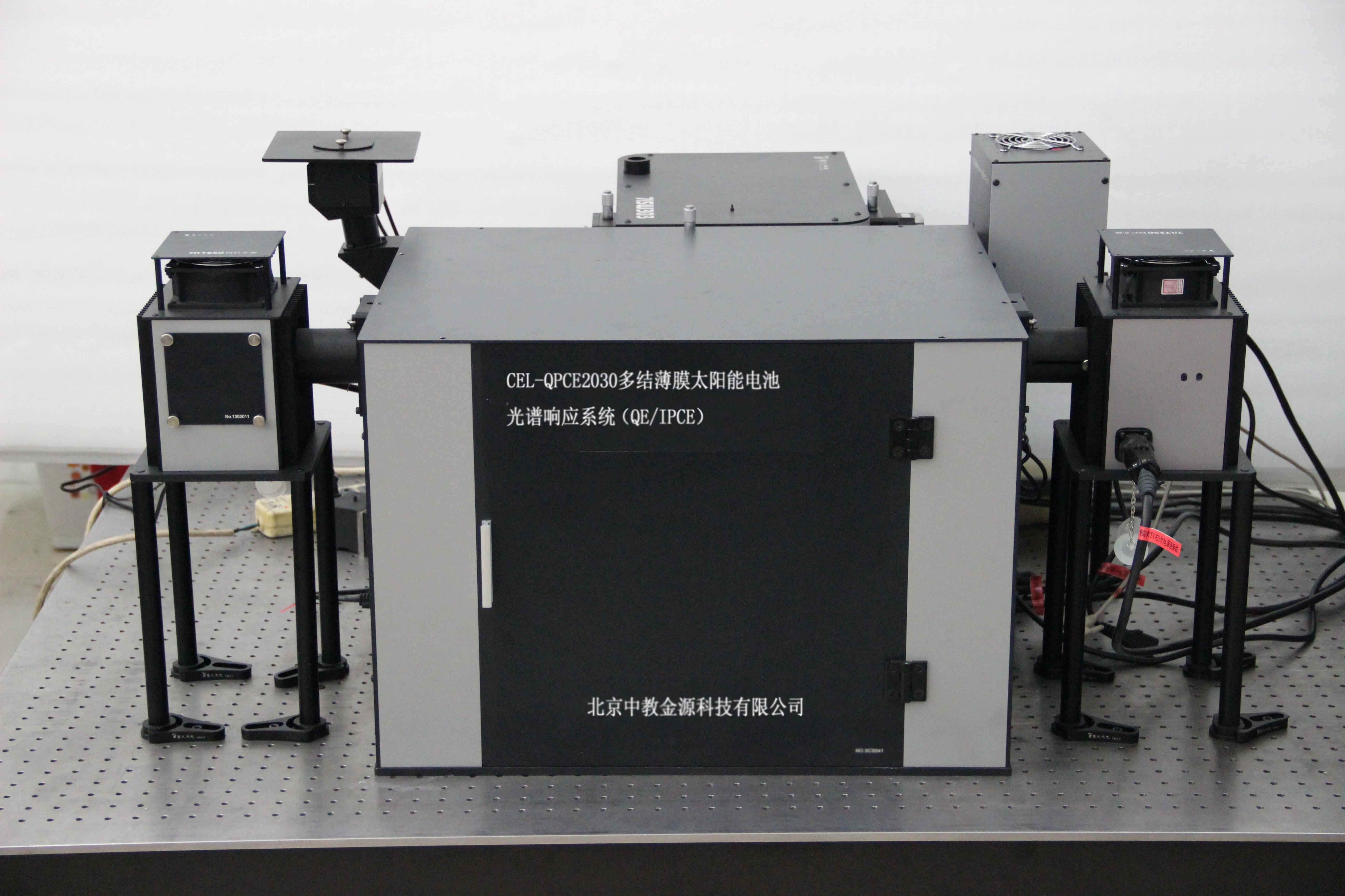 太陽能電池的光譜響應和量子效(xiào)率對分析太陽能電池的工藝(yì)問題以及研(yán)究電池片(piàn)的性能有重要的參考價值。CEL-QPCE2030多結(jié)薄膜太陽能電池光譜性能(néng)測試係統可以將多結薄膜太陽能電池各(gè)節(jiē)的絕對光(guāng)譜響應(Spectral Response)和量(liàng)子效率(Quantum Efficiency)分別測出(chū)來(lái),並計算得到(dào)整個電池片的絕對光譜(pǔ)響應和量子效率。同時還可(kě)以分別計算頂電池和底電池的電(diàn)流(liú)密度,以及電池總的電流密度(AM1.5G 條件下)。